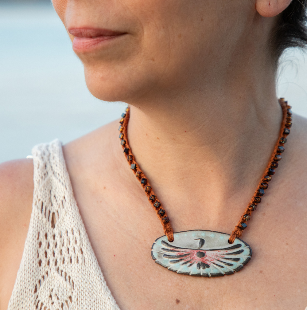 Phoenix Pendant, a collaboration with local potter Gina Inzinna!