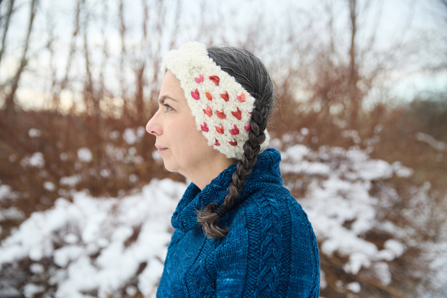 Thrumola is worked flat and seamed at the back, with fat cables at the crown for a decorative touch. The shaped ear muffs are the answer if the question is, “How do I keep my dang ears warm?” This headband has you covered — literally. The pattern includes a link for a video tutorial to teach you my tricks for thrumming!