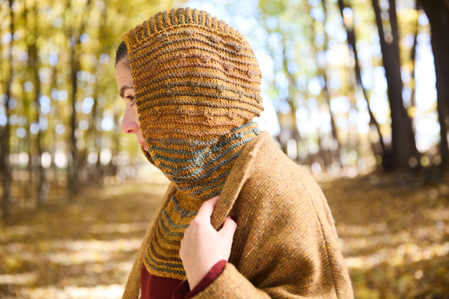 Into the Hoods was our Fall ‘25 mystery knit-a-long that offered a whopping six hooded patterns in one knitting adventure! Over each of the four clues, knitters worked through the suspense of creating a hood without knowing exactly where the trail would lead. Each knitter chose their own path—picking between the Balaclava, Dickey, or Scarf style, and deciding whether to work in a single color or two coordinating colors.