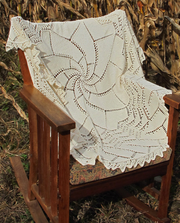 Centrino was originally released as the September 2009 Year of Lace design. Centrino is a giant doily, based on a few vintage patterns I found and adore! I’m not a doily person, neither lacey nor frilly, but the lure to begin something that starts out quite wee and grows into an abundant orb could not be refused.
