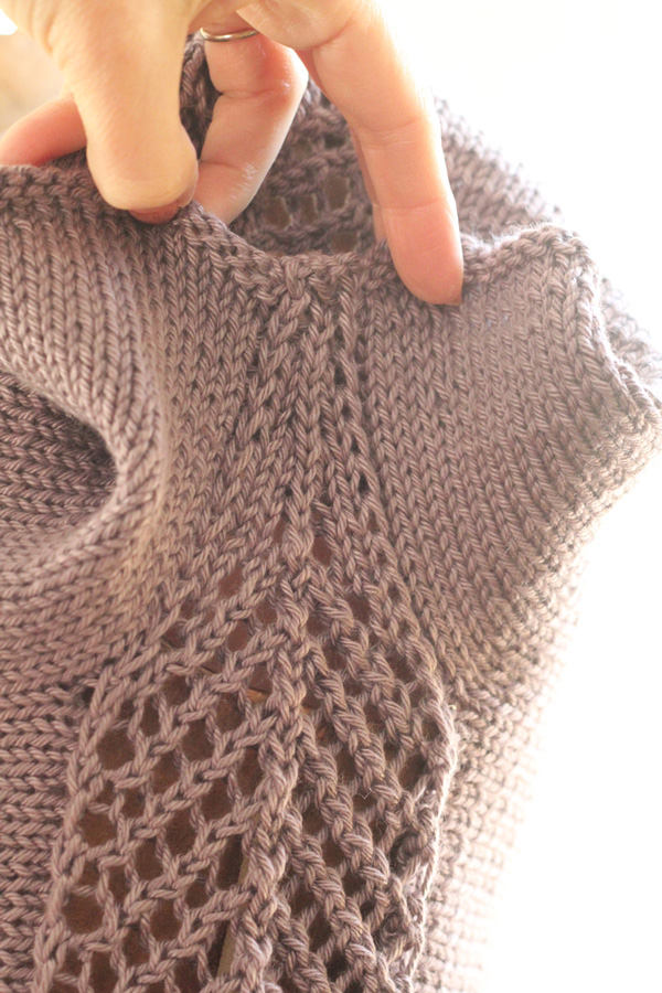 Novel-T is a sweet summer sweater knit with my unique side-to-side Novus construction!