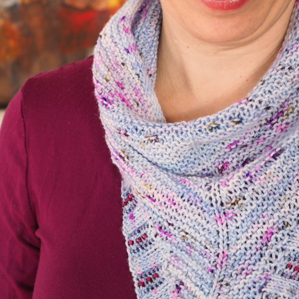 This fun accessory is knit from the bottom up in the round... it starts with a 6-row border that has beads slipped up between stitches at the center front. Next, short rows and strategically placed decreases shape the fabric. Finally, your “like a cowl” is finished off with a simple garter stitch neck and classy I-Cord bind off.